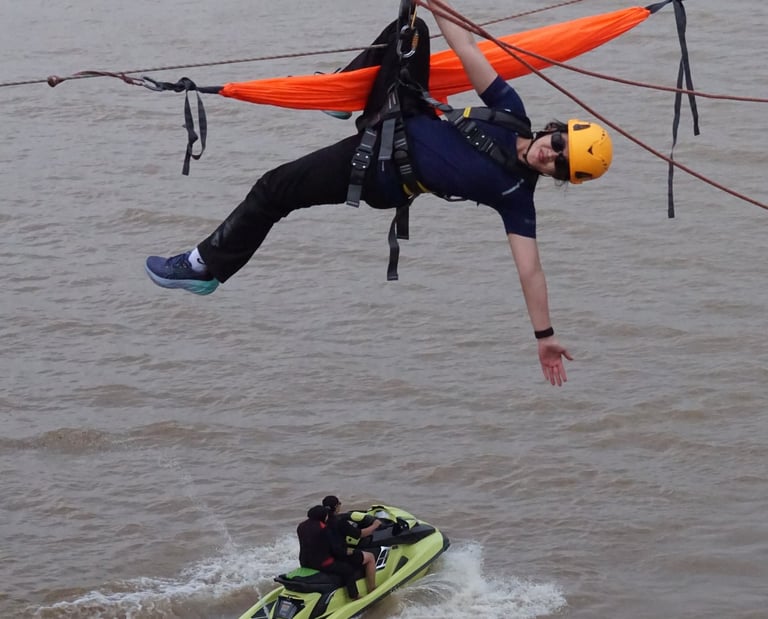 Peserta akan memulai petualangan dengan naik menggunakan sistem tali dari bawah jembatan menuju titik aktivitas, didampingi tim profesional dengan standar keselamatan tinggi.